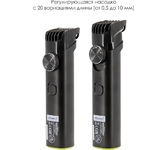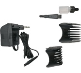 Мощный мотор, лезвие из нерж.стали, точная регулировка среза волос 0,5 - 19,5 мм с помощью 2 гребней, настройка с помощью вращающегося регулятора, автономная работа до 50 мин., в комплекте масло д/смазки, кисточка для очистки, зарядное устройство