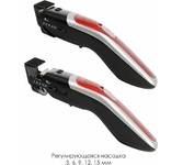 Качественные стальные ножи. Сетевой режим работы. В комплекте насадки 3, 6, 9, 12 мм. Машинка оснащена рычагом с кнопкой фиксации, расположенной практически под большим пальцем правой руки, он позволяет менять длину срезаемых волос без помощи гребня-насадки.