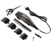 машинка для стрижки волос сетевая, Двигатель вибрационного действия Подвижный и неподвижный ножи изготовлены из нержавеющей стали с хромированным покрытоем Прочный корпус, зргономичный дизайн Петля для удобного хранения Насадки для стрижки 4 шт., ножницы, расчестка Сетевое питание Номинальное напряжение 220 В Частота 50 Гц Номинальная мощность 12 Вт