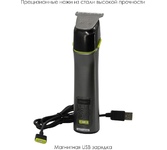 Цвет: Черный; Машинка предназначена для стрижки только сухих волос; Материал/покрытие лезвий: Нержавеющая сталь; Питание: От аккумулятора; Время работы от аккумулятора, мин: 120; Минимальная длина стрижки, мм: 3; Число установок длины: 1; Количество насадок: 1; Область применения: Волосы, Лицо, Борода; Класс машинки: Домашний; Особенности бритв, триммеров, эпиляторов: Быстрая зарядка, Зарядка от USB-порта; Способ регулировки длины: С помощью насадок; Индикация: Индикатор зарядки аккумулятора