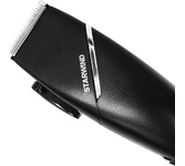 Машинка для стрижки волос. Оснащена всеми видами насадок для удобства стрижки в труднодоступных местах. Низкий уровень шума. Качественные стальные ножи. Имеется рычаг для регулировки длины срезания волос. Мощный и надежный АС двигатель. Номинальное напряжение-220В переменного тока, Частота-50Гц. Номинальная потребляемая мощность-10 Вт. Рабочий цикл 50 мин. Длина шнура - 1.8м.