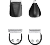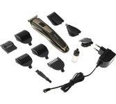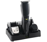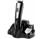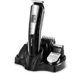 Мощность 3 Вт, Непрерывная работа 45 мин., Полная зарядка 8 ч., База с подзарядкой , Индикатор зарядки , Насадка для стрижки, Насадка-стайлер, Бритвенная насадка, Триммер для носа и ушей, Щеточка, Масло, 4 насадки(3,6,9,12 мм).
