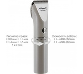 Керамическое лезвие, точная настройка длины среза с помощью регулятора, 4 насадки-гребня (3/6/9/12 мм), мотор мощностью 5 Вт, Li-Ion аккумулятор 2000 мАч, работа без подзарядки до 3 ч., полная зарядка за 3,5 ч., LED дисплей (индикация заряда и необходимости смазки лезвий), защитная блокировка включения. В комплекте: подставка, 4 гребня, расческа, ножницы, кисточка для очистки, масло для смазки лезвий, кабель USB Type-C