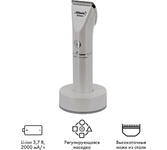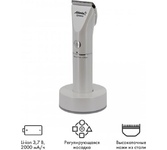 Предназначена для стрижки волос и бороды любой длины. Работа от встроенного аккумулятора, 1 час автономной работы после 1-й зарядки. Нерж. стальные лезвия. Высота стрижки регулируется с помощью вращающегося диска на корпусе машинки (5 уровней). Является влагозащищенной и может очищаться от волос под струей воды, а также работать в помещениях повышенной влажностью. Зарядка аккумуляторов от сети 220В, номинальная потребляемая мощность 3 Вт.