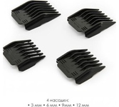 Влагозащищенная. Аккумуляторно-сетевой режим. Автономный режим 45 минут. Батарея разряжена – индикатор мигает красным цветом. Батарея заряжена – индикатор горит зеленым цветом. В комплекте 4 насадки: 3, 6, 9, 12 мм. Ножи изготовлены из нержавеющей стали, что позволяет точно срезать каждый волосок при создании Вашего неповторимого стиля.