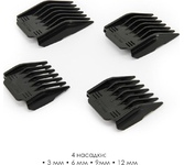 Профессиональная серия приборов для стрижки. В комплекте 4 насадки-гребня на 3/6/9/12 мм, лезвие из углеродистой стали, Li-Ion аккумулятор 2000 mAh, зарядка от USB за 2,5-3 ч, непрерывная работа до 3,5-4 ч, возможность использования во время зарядки, индикация низкого уровня заряда и полной зарядки. В комплект входит: защитная крышка, 4 гребня, расческа, ножницы, щеточка для очистки, масло для смазки, USB кабель.