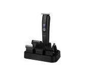 Мощность: 5 Вт LED дисплей Бритва, триммер, машинка для стрижки 2 насадки для волос: Т-образная насадка, U-образная насадка 5 насадок-гребней: Т-образные 3 мм/6 мм/9 мм/12 мм; U-образная телескопическая 3 мм-6 мм Насадка-триммер для носа и ушей Насадка-бритва Лезвие из нержавеющей стали Встроенный аккумулятор: Li-ion 18650, 3,7 В, 1300 мАч Время зарядки: 180 мин Время работы: 300 мин Зарядка от USB Вход: 5 В, 1 А Выход: 3.7 В В комплекте: Щеточка для чистки лезвий Масло для смазки лезвий Подставка USB кабель