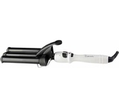 Щипцы для волос тройные. Мощность: 70Вт. Диаметр нагревательных элементов: 22мм. Максимальная температура нагрева 200°С. Керамическое покрытие. Защита от перегрева. Длина сетевого шнура: 1,85м. Вращение сетевого шнура на 360°. Цвет: белый/черный.