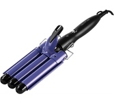 Стайлер Galaxy LINE GL 4642, черный с фиолетовым, без регулировки температуры, 110 Вт, тройной, макс темп. 200°C, нагрев. элемент с защитой от перегрева, рабочие поверхн. диаметром 25 мм, рабочая поверхность с керамич. покрытием, индикатор работы, длина ш