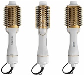 Мощность 1200Вт. 2 скоростных режима. 2 насадки в комплекте (диаметр 50мм и 30мм). Керамическое покрытия насадок для бережной сушки и укладки волос. 2 направления вращения насадок. Функция "Холодный воздух". Петля для подвешивания.