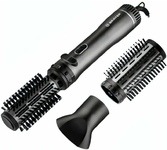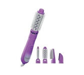 Щетка для сушки волос с дополнительными рядами густой щетины и силиконовым покрытием ; Регулируемая круглая щётка для создания завитков (диаметр 25-40 мм) ; Насадка для создания объёмных причёсок ; Насадка для сушки волос; Мощность 600 Ватт; Бережная сушк