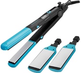 Характеристики: Покрытие: керамическое Температура: 4 режима (160-180-200-220 С) Автоматическое отключение: 60 мин Время нагрева: от 30 до 130 сек Дисплей: LED Размеры пластин: 110 х 25 мм Плавающие пластины Длина шнура: 1.8 м Вращающийся шнур Функция блокировки пластин