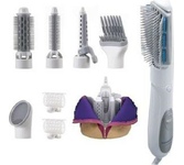 фен-щетка, мощность 1000 Вт, ионизация, керамическое покрытие, автоматическое вращение насадок.