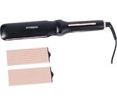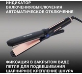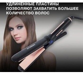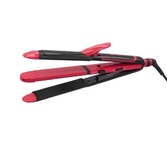 стайлер 3 в 1: выпрямитель, плойка и плойка-гофре; 45 Вт, керамическое покрытие, нагрев до 200°С, пластины 30х105 мм, диаметр плойки 30 мм, ненагревающийся наконечник, световой индикатор работы, термоизоляционная ручка с рычажком, шнур питания 1,9 м