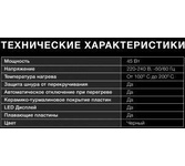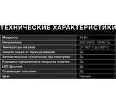 Мощность 45 Вт Максимальная температура 220 °С Керамическое покрытие /турмалин Материал корпуса- пластик Насторойка т