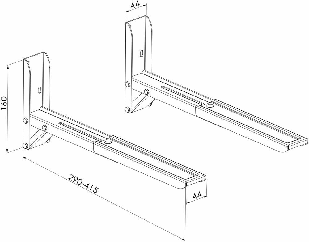 Стальной кронштейн для настенного крепления микроволновых печей и печей-гриль. Высота крепления 160 мм. Регулируемый вылет от стены 290-415 мм. до30кг.