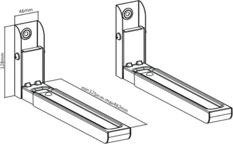Тип: настенный для микроволновой печи Нагрузка: 30 кг. Расстояние от стены: 325 - 492 мм