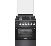 ШхГхВ: 60х60х88,5 см; 4 газовые конфорки; полный газ-контроль; автоподжиг; решетка: чугунная; электрическая духовка с конвекцией: 63 л; 6 режимов; подсветка; электрогриль; энергосберегающее стекло дверцы духовки; отделение для хранения посуды; таймер электронный с дисплеем с автоотключением духовки; 2 противня, 1 хромированная решетка; крышка: стекло; цвет: графитовый