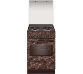 О модели GEFEST ПГЭ 5102-03 0054 Газоэлектрическая плита шириной 50 см, поставляется с защитной крышкой. Фасад - стеклянный, в коричневом цвете с нанесенным рисунком текстуры мрамора. В нижней части плиты есть выдвижной ящик для хранения посуды. Варочная поверхность - эмалированная, все газовые конфорки с электроподжигом (встроен в поворотные ручки управления) и газ-контролем. Составные чугунные решетки - прочные и просты в уходе. Электрический духовой шкаф автоматически поддерживает заданную температуру (термостат), есть таймер со звуковым сигналом об окончании приготовления. Верхний нагревательный элемент - гриль, имеет дополнительный режим работы - вместе с конвекцией. Ключевые преимущества: - Гриль электрический - Вертел с электроприводом - Усиленный гриль с конвекцией - Электророзжиг горелок, встроенный в ручки - Газ-контроль горелок стола - Терморегулятор (термостат) - Таймер электромеханический - Подсветка духовки один