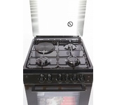 Цвет: черный; Габариты ВхШхГ: 85х50х60; Горелки стола: Газовые – 4 шт; Мощность горелок рабочего стола: Горелка передняя левая/правая – 2,0/2,4 кВт; Горелка задняя левая/правая – 2,0/1,0 кВт; Электрический духовой шкаф; Объем духовки в литрах: 65 л; Верхний/нижний нагреватель духовки: тен; Решетка рабочего стола: сталь; Крышка рабочего стола: стекло; Термометр духовки; Кнопка электророзжига горелок стола; Электрическая подсветка духовки; Газ-контроль рабрчего стола; Противень: 2 шт
