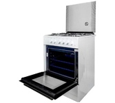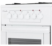 Горелки стола: Газовые – 4 шт. Мощность горелок рабочего стола: Горелка передняя левая/правая – 2,0/2,4 кВт. Горелка задняя левая/правая – 2,0/1,0 кВт. Электрический духовой шкаф. Объем духовки в литрах: 65 л. Верхний/нижний нагреватель духовки – тен.Решетка рабочего стола – сталь. Крышка рабочего стола – стекло. Термометр духовки. Кнопка электророзжига горелок стола. Электрическая подсветка духовки. Противень – 2 шт. Цвет Белый.