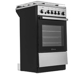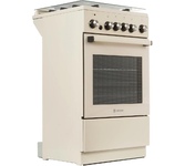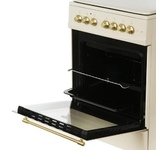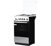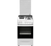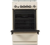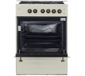 Цвет - белый. Размеры, мм - высота/ширина/глубина – 850/500/500. Вес, кг - 38. Электророзжиг. 4 газовые конфорки 1,0/1,75/1,75/3,0 кВт. Газ контроль. Духовка: Два нагревательных элемента: 1,2 кВт и 0,8 кВт. Электрическая духовка. ТЭН-гриль - 1,8 кВт. Терморегулятор. Освещение. Вертел. Гриль. Механический таймер. Объём духовки 46 л. Комплектация: Большой противень. Малый противень. Решётка для жарки. Чугунная решётка. Стеклянная крышка рабочего стола. Хозяйственный отсек.