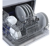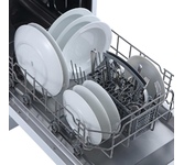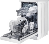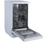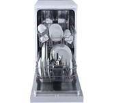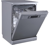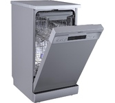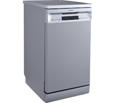 Отдельностоящая, габариты 84,5x44,8x60 см, Цвет серебристый, 10 комплектов посуды, кол-во корзин - 2 для посуды, 1 для столовых приборов, А++, LED дисплей, таймер отсрочки запуска 1-24 ч, кол-во программ - 6: интенсивная, обычная, эко, быстрая, стекло, 90 минут, тип сушки - конденсационная, расход воды за цикл - 9л., режим 1/2 загрузки, экстра сушка, макс.уровень шума - 49 дБ