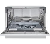 Компактная посудомоечная машина; Габариты (ВxШхГ): 43,8x55х50 см; Электронное управление; Цифровой дисплей с отображением выбранной программы; LED индикаторы; 7 программ; 6 комплектов; Таймер отложенного старта 1-24 часов; Защита от протечек; Программа са