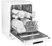 Тип посудомоечной машины: полноразмерная. Тип сушки: конденсационная. Загрузка, комплектов посуды: 12. Класс энергопотребления: A++. Класс мойки: A. Класс сушки: A. Тип управления: электронное. Максимальный уровень шума: 49. Максимальный расход воды: 11. Количество программ мойки: 6. Тип защиты от протечек: полная (корпус + шланг для заливки воды). Программы: интенсивная, нормальная, ЭКО, стекло, 90 минут, быстрая. Отсрочка запуска: 24. Количество корзин: 2. Габариты упаковки (ед) ДхШхВ: 0.65x0.64x0.87. Вес упаковки (ед): 47.5. Напряжение питания: 220-240 В. Технология защиты от протечек: AquaStop. Тип установки: напольная. Минимальное время отсрочки запуска: 1. Гарантия: 36 мес.. Размеры (ШхВхГ): 59.8х84.5х60 см. Цвет: белый. Внутренняя конструкция: корзина для столовых приборов, регулируемая по высоте корзина для посуды. Индикация: наличия ополаскивателя, наличия соли. Дополнительные особенности: использование средств 3 в 1. Режимы и программы: деликатная программа, интенсивная мойка, режим половинной загру