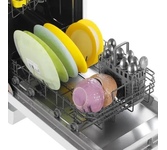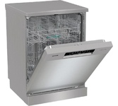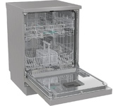 (Ш*Г*В) 59.7x59.9x84.5 см. Цвет серый. Полноразмерная, сушка конденсационная. Максимальный расход воды 11 л. Максимальная температура 70 °С. Загрузка 13 комплектов посуды. Кол-во корзин 2. Регулируемая по высоте корзина для посуды, складные держатели тарелок, полки для кружек. Дисплей. Звуковой сигнал.