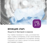 Габариты ВхШхГ, см: 85х59,5х60; Цвет: Металлик; Загрузка: 10,5 кг; Тип загрузки: Фронтальная; Тип двигателя: Инверторный; Тип управления: LED дисплей; Максимальная скорость отжима: 1400 об/мин; Уровень шума в режиме Стирка: 60 дБ; Уровень шума в режиме Отжима: 76 дБ; Расход воды за цикл: 59 л; Объем барабана, л: 64; Диаметр люка: 36,3; Количество программ: 15; Класс энергоэффективности: А+++; Специальные программы: ЭКО, Постельное белье, Спортивная, Детская, Очистка барабана; Обработка паром эффективно удаляет загрязнения и запахи, облегчает глажку; Мой цикл создает свой персональный режим стирки