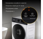Стиральная машина, полноразмерная 50-60см, тип загрузки – фронтальная, максимальная загрузка – 8 кг, электронное управление, инверторный мотор, скорость отжима - 1200 об/мин, 12 программ, уровень шума при стирке - 56 дБ, защите от детей, отсрочка старта, максимальное время отсрочки – 24 часа, обработка паром, дозагрузка белья, класс энергопотребления – A, цвет – белый