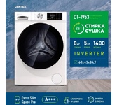 Макс. загрузка 8/5 кг (стирка/сушка) Макс. скорость отжима 1400 об/мин Объем барабана 54 л Класс А+++ Мощность 2000/1600 Вт (стирка/сушка) Кол-во режимов 16 Режимы Smart, Автоматическая балансировка белья, Без звука, Блокировка от детей, Догрузка белья, Мое время, Очистка барабана Управление Сенсорное Диаметр 480 мм (дверца) Вес нетто 60 кг Вес брутто 65 кг Уровень шума 62/69/76 дБ (стирка/сушка/отжим) Особенности Инверторная система, Увеличенный объем камеры, Электронный регулятор устойчивости Габариты 60 х 43 х 84.7 см Класс защиты IPx4 Класс электробезопасности I Класс эффективности отжима А Потребление воды за цикл 48 л Энергопотребление за цикл 1,05/6,45 кВт/ч (стирка/стирка+сушка) Необходимое давление в водопроводе 0,03 – 1 МПа Функция "Сушка" Есть Функция "Пар" Нет Гарантия 3 года