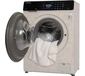 Мотор Direct Drive Inverter Motor А+++, 16 программ, Максимальная загрузка белья – 8 кг Скорость отжима max 1200 об, Защита от протечек полная (AQUA STOP), Объем бака – 58 л, Диаметр двери – 52 см, Ш*Г*В: 59,5*60*85, Материал барабана – нерж. сталь, бак полимерный, Система управления дисбалансом, Система обнаружения ошибок, Блокировка от детей, Напряжение, частота 220-240В/50Гц, Цвет – Бежевый мрамор