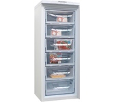 Габариты (ВхШхГ)142х57,4х61см. Объем 220л. Вес 50кг. Однокамерный морозильник на 6 ящиков. Управл-е электромеханическое. Размораж-е морозильной камеры ручное. Производительность замораживания, кг/сут не менее 14. Класс энергетической эффективности А. Климатический класс N. Потребление энергии 305 кВт/год. Перевешиваемые двери. Цвет белый.