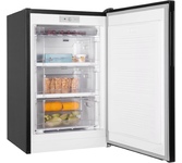 105 л, класс А+, 3 секций МК, 3 выдвижных ящика из пластика, 1 лоток для ягод, 93х57х63 см, новая вертикальная ручка, съемный уплотнитель двери, цвет: черный матовый