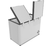Серия STANDART DOUBLE. Удобный большой ларь с двойной глухой металлической крышкой. Размеры (ДхШхВ), 120х60х84см. Объем (л) 380. Двойная крышка обеспечивает простой доступ к нужной части ларя, сокращая потребление электроэнергии на поддержание температуры. Внутри морозильный ларь не разделен, что позволяет удобно хранить крупные и мелкие продукты. Темп.Режим -18…-22. 1 корзина, колеса. Максимальная температура окружающей среды, C до +30.