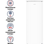 Класс энергопотребления: A+. Тип управления: механическое. Система размораживания: ручная. Общий объем морозильной камеры: 181. Уровень шума: 40. Количество ящиков: 6. Мощность замораживания: 8. Перевешиваемые двери: есть. Потребление энергии: 220. Количество компрессоров: 1. Хладагент: R600a. Полезный объем морозильной камеры: 168. Регулируемые по высоте ножки: есть. Антибактериальное покрытие: есть. Вес (нетто): 44. Габариты упаковки (ед) ДхШхВ: 0.58x0.6x1.46. Вес упаковки (ед): 48. Страна производства: Китай. Количество дверей: 1. Количество камер: однокамерный. Материал дверей: металл. Материал полок: металл. Гарантия: 12 мес.. Размеры (ШхВхГ): 54.5 х 143 х 56.6 см. Цвет: белый. Климатический класс: N, SN, ST. Объем: 181 л. Класс энергопотребления: A+. Размеры (ШxВxГ): 54.5 х 143 х 56.6 см. Мощность замораживания: 8 кг/сут. Разморозка: ручная. Количество: ящиков 6