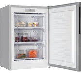 100 л, класс А+, 3 секций МК, 3 выдвижных ящика из пластика, 85х57х63 см, новая вертикальная ручка, съемный уплотнитель двери, цвет: серебристый