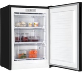 100 л, класс А+, 3 секций МК, 3 выдвижных ящика из пластика, 85х57х63 см, новая вертикальная ручка, съемный уплотнитель двери, цвет: черный матовый