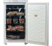 Габариты (ВхШхГ) 89.7х48х60см. Общий объем 94л. Тип управления: механический. 1 компрессор. Мощность замораживания до 9 кг/cутки. Размораж-е ручное. Температура в режиме хранения не выше -18C, в режиме замораживания -24С. Класс энергопотребления В Возможность перевешивания двери Цвет: белый.