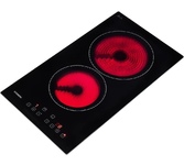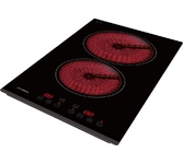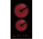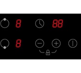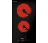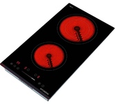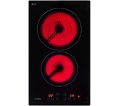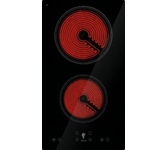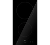 Стеклокерамическая варочная панель шириной 30см; Общая мощность 3000 Вт; 2 зоны нагрева: Передняя: 1800 Вт / диаметр 200 мм; Задняя: 1200 Вт / диаметр 165 мм; Сенсорное управление; 9 уровней мощности; Таймер 99 мин; Блокировка от детей; Индикатор остаточного тепла; Автоматическое отключение; Напряжение 220-240 В; Частота 50/60 Гц; Цвет Черный
