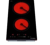 Встраиваемая электрическая варочная поверхность, 30 см , дизайн домино , 2 зоны нагрева, зона расширения нагрева, размер 290*520 мм, общая мощность 3 кВт, китайская стеклокерамика, скошенный край отсутвует, сенсорная панель управления - слайдер, красная подсветка, таймер 99 мин, индикация остаточного тепла, защитное автоотключение, блокировка от детей верхняя зона нагрева диаметр 200 мм 1,8/0,9 кВт нижняя зона нагрева диаметр 165 мм 1,2 кВт