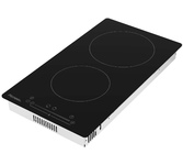 Индукционная варочная панель шириной 30см; Общая мощность 3500 Вт; 2 зоны нагрева: Передняя: 1500 Вт / диаметр 160 мм; Задняя: 2000 Вт / диаметр 180 мм; Сенсорное управление; 9 уровней мощности; Таймер 99 мин; Блокировка от детей; Индикатор остаточного тепла; Автоматическое отключение; Напряжение 220-240 В; Частота 50/60 Гц; Цвет Черный