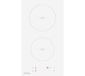 Индукционная варочная панель шириной 30см; Общая мощность 3500 Вт; 2 зоны нагрева: Передняя: 1500 Вт / диаметр 160 мм; Задняя: 2000 Вт / диаметр 180 мм; Сенсорное управление; 9 уровней мощности; Таймер 99 мин; Блокировка от детей; Индикатор остаточного тепла; Автоматическое отключение; Напряжение 220-240 В; Частота 50/60 Гц; Цвет Белый