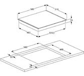 Общие данные: Габариты: 5.3x58x51 см Габариты ниши для встраивания: -х56x49 см Тип конфорок: 4 быстрого нагрева Мощность конфорок: Передняя левая:180 мм / 0.7 кВт (1.7 кВт в режиме расширения) Передняя правая:145 мм / 1.2 кВт Задняя левая:145 мм / 1.2 кВт Задняя правая:180 мм / 1.8 кВт Зоны расширения: радиальная Индикаторы остаточного тепла для каждой конфорки Управление и функции: Тип управления: сенсорное (слайдер) Количество ступеней нагрева: 9 Таймер 1-99 мин Безопасность: Автоматическое отключение Защита от проливания Защитная блокировка от детей Дополнительная информация: Обработка края: скошенный край, 4 стороны Максимальная потребляемая мощность, кВт: 5.9 Сетевой кабель в комплекте Длина сетевого кабеля: 1 м Напряжение/Частота: 220-240 В, 50/60 Гц Вес: 8.3 кг