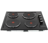 Установка рабочей поверхности: независимая. Материал рабочей поверхности: эмаль. Количество электрических конфорок: 4. Управление: механическое. Класс энергопотребления: A. Мощность подключения: 6. Минимальная толщина столешницы: 30. Вес (нетто): 9. Тип: электрическая. Расположение панели управления: сбоку. Общее количество конфорок: 4. Габариты упаковки (ед) ДхШхВ: 0.68x0.56x0.12. Вес упаковки (ед): 9.56. Страна производства: Турция. Гарантия: 36 мес.. Левая дальняя конфорка: мощность 1.5 кВт, размер 150 мм. Правая дальняя конфорка: мощность 1.5 кВт, размер 185 мм. Левая ближняя конфорка: мощность 1.5 кВт, размер 185 мм. Правая ближняя конфорка: мощность 1.5 кВт, размер 150 мм. Цвет: черный. Размеры ниши для встраивания (ШхГxВ): 540x490. Размеры(ШхГхВ): 590х520х51 мм. Тип конфорок: чугунные. Тип переключателей: поворотные. Количество конфорок: 4. Материал поверхности: эмаль. Переключатели: сбоку, поворотные