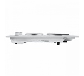 Электрическая варочная панель MAUNFELD AVCE3024SBK — это идеальное сочетание элегантного дизайна и функциональности. Ее черная стеклокерамическая поверхность придаст вашей кухне современный вид, а компактные размеры позволят легко встроить ее в небольшие пространства. Высота панели составляет всего 5.4 см, что делает ее практически незаметной на фоне столешницы, при этом ширина 29 см и глубина 51 см обеспечивают достаточно места для приготовления пищи. Габариты ниши для встраивания составляют 27 х 49 см, что делает установку максимально простой и удобной. Эта модель оснащена двумя Hi-Light конфорками, которые быстро нагреваются и обеспечивают равномерное распределение тепла. Передняя конфорка диаметром 200 мм имеет мощность 1800 Вт, а задняя, диаметром 165 мм, — 1200 Вт. Общая максимальная мощность достигает 3000 Вт, что позволяет готовить блюда быстро и эффективно. Электронное управление с сенсорными элементами, включая удобный сенсорный слайдер, делает использование панели интуитивно понятным и ле
