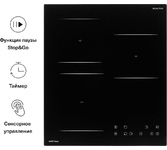 Установка рабочей поверхности: независимая. Материал рабочей поверхности: стеклокерамика. Количество индукционных конфорок: 4. Количество конфорок быстрого нагрева: 4. Управление: электронное. Тип таймера: электронный. Дисплей: есть. Мощность подключения: 6.4. Тип: индукционная. Расположение панели управления: спереди. Общее количество конфорок: 4. Габариты упаковки (ед) ДхШхВ: 0.65x0.6x0.11. Вес упаковки (ед): 5.1. Количество уровней мощности: 9. Гарантия: 24 мес.. Левая дальняя конфорка: мощность 1.2/1.5 кВт. Правая дальняя конфорка: мощность 2/2.3 кВт. Левая ближняя конфорка: мощность 2/2.3 кВт. Правая ближняя конфорка: мощность 1.2/1.5 кВт. Цвет: черный. Размеры ниши для встраивания (ШхГxВ): 565x495x56 мм. Размеры(ШхГхВ): 590х520х60 мм. Таймер: с автоотключением. Функции и режимы: пауза в готовке, поддержание тепла, увеличение мощности нагрева (Booster). Индикация: выбранной мощности, остаточного тепла. Тип переключателей: сенсорные. Тип конфорок: индукционные. Безопасность: блокировка управления (защита
