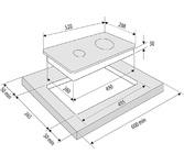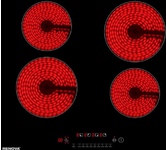 60*52 см. Цвет черный. Максимальная мощность потребления - 6 кВт. Количество ступеней мощности 9. Сенсорное управление. Количество зон нагрева - 4 (1.2/1.2/1.8/1.8 кВт). Таймер 1-99. Автоматическое отключение. Защита от перегрева. Блокировка панели управления. Индикация наличия посуды. Звуковая индикация.